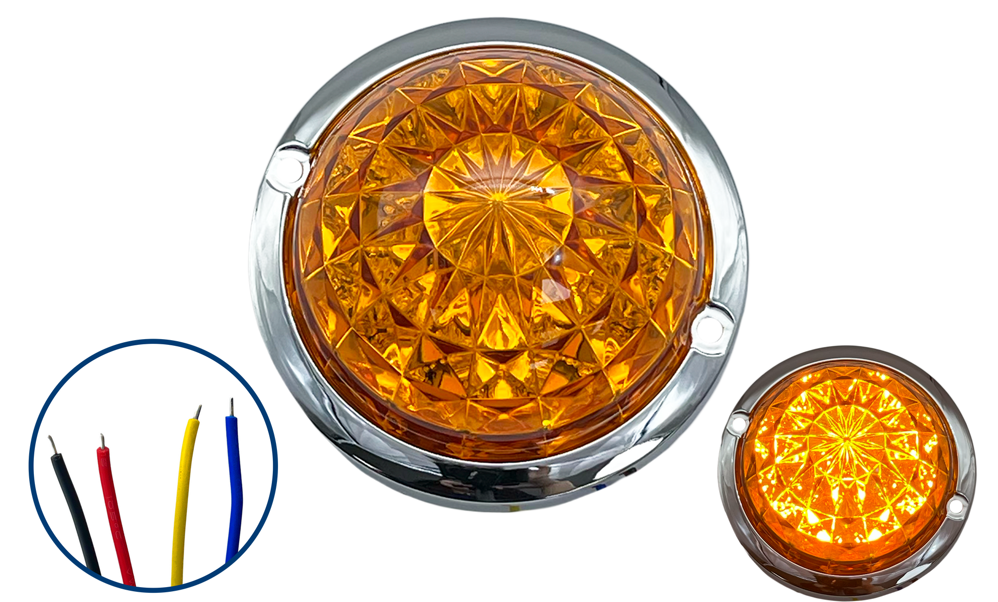 Plafón Led Redondo de 3" Diamante con Brida Cromada 12/24V cc